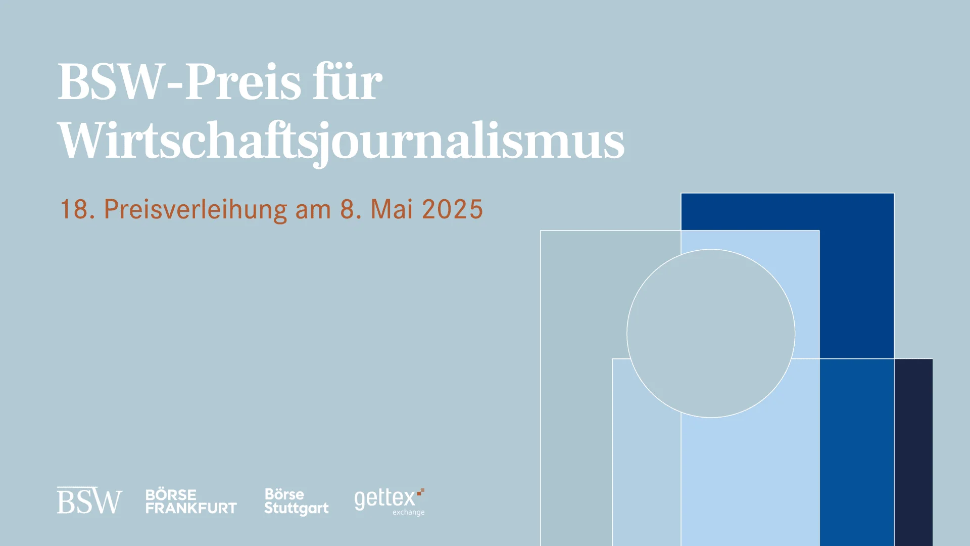Together with Börse Frankfurt, Boerse Stuttgart Group and gettex exchange the BSW presents the BSW Business Journalism Awards every year – for the 18th time in 2025.